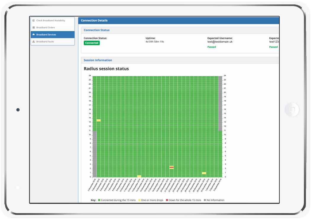 The Plustel portal allows you to check broadband availablity of a location by searching for the CLI or postcode. You can also place orders, and manage every aspect of your broadband service. Monitor network performance and uptime in easy-to-read graphs.